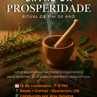 Um ritual sensorial para encerrar o ano com intenção, aroma e alma. Aprenda a usar o poder das ervas para criar chás, banhos e rituais de prosperidade — e leve pra casa o seu Kit da Prosperidade.